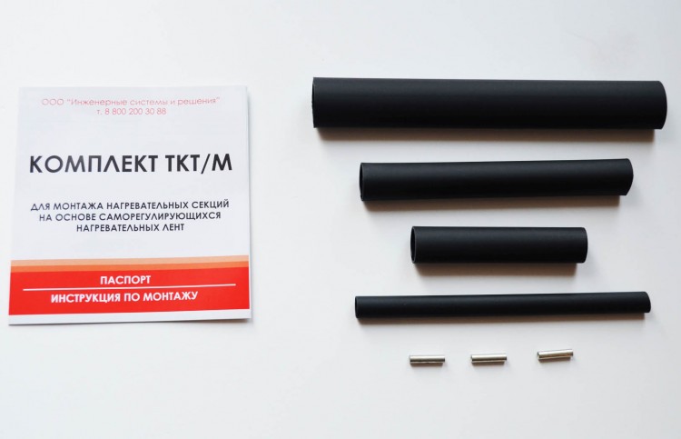 Комплект ТКТ/М предназначен для соединения саморегулирующейся электрической нагревательной ленты и установочного провода непосредственно на объекте, в том числе во взрывоопасной зоне, с максимальной температурой воздействия 125 °С. Комплект ТКТ/М включает в себя термоусаживаемые трубки на основе полиэтиленовой композиции и обжимные гильзы.